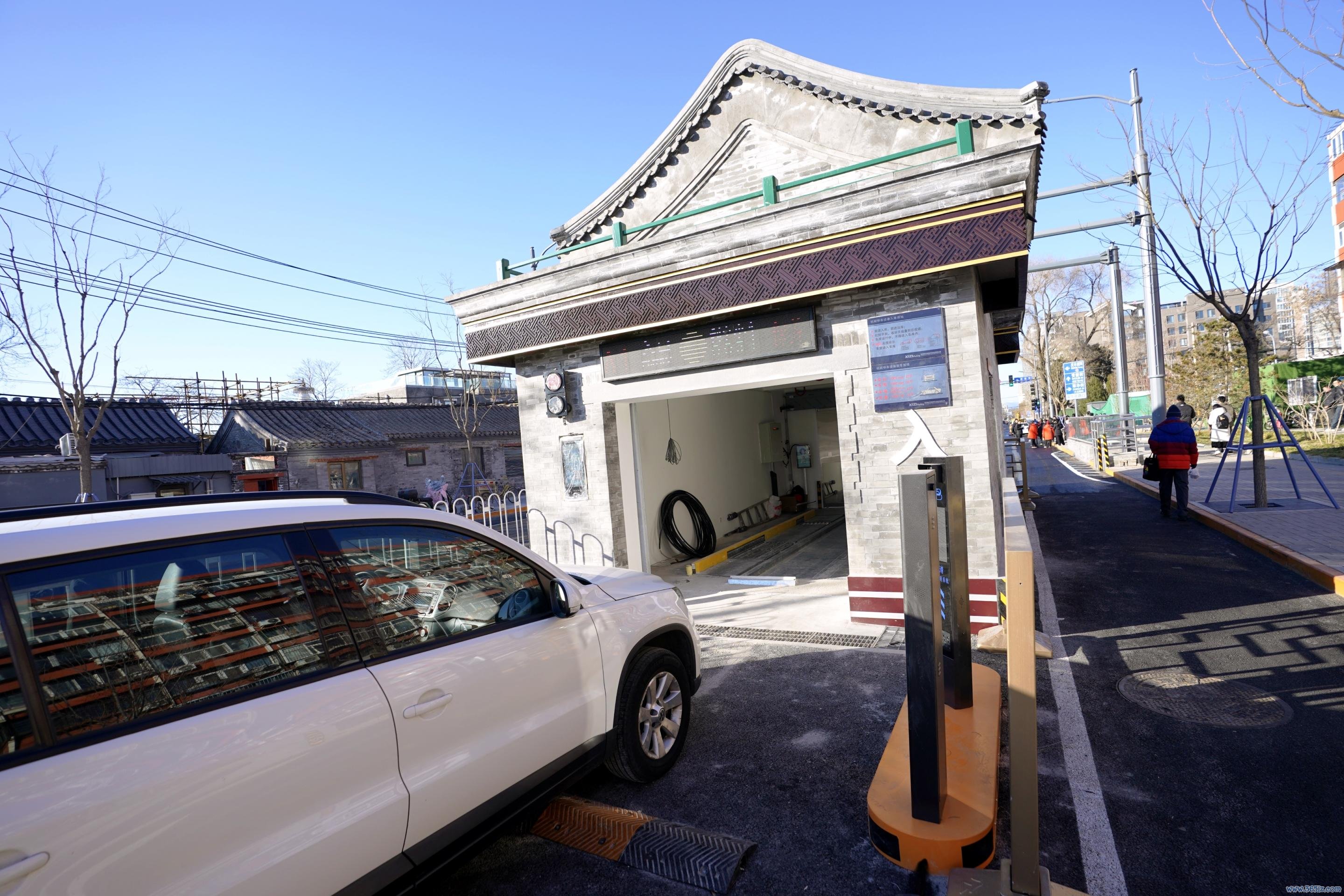 更令人欣喜的是地下空间的创新开发。受壁街东西两端,新建的两座地下无人停车楼共有181个车位。车位在地下14米处,仿古凉亭就是地面出入口。用户不用下地库,只需在入口处按键输入指令,后台即可自动完成车位分配、设备调度。